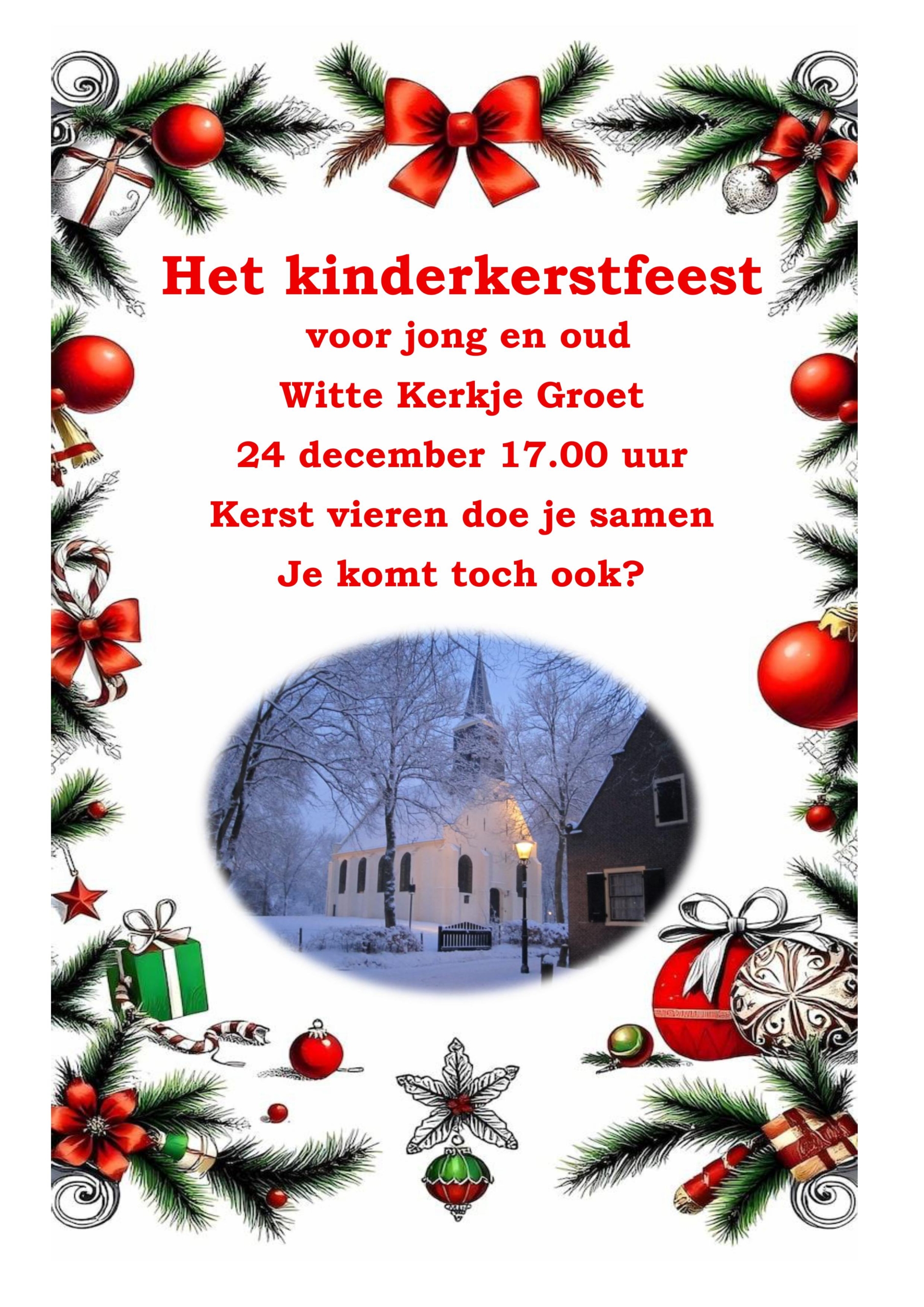 Kerst in het kerkje dat altijd wit is, ook zonder sneeuw. Dit jaar het kerstverhaal van de herbergier, liedjes, kerstboom versieren en een cadeautje bij de uitgang. En een collecte voor warme spullen in Oekraine.