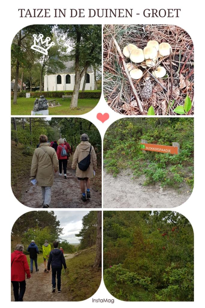 Op 4 oktober liepen 30 mensen, rijp en groen, door de duinen. De wandeling was een vervanging van de Taizeviering. Stilte en zang rond een uitwaaiend kaarsje, wisselden elkaar af. Maar het was droog en af en toe kwam er een aarzelend zonnetje, als een glimlach van de Eeuwige.